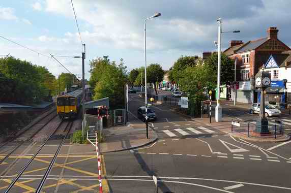 Then and Now - The Level Crossing in 1911 and 2009 Here are two pictures taken from (almost) the same location nearly 100 years apart. Malcolm Shykles sought to create a modern view of the historic 1911 photo. Malcolm took his picture from upstairs in the Signal Box. The Signal Box was not built until 1925 so the original photo must have been taken from an upstairs window above one of the shops in Hale End Road (probably number 507). In 1911 a (smaller) Signal Box was in use, located next to the station, and this can been seen in the older photo. It's close to the current location of The Village Florist flower shop.