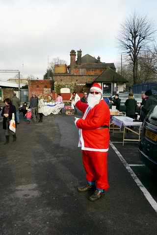 8th December 2010 - Father Christmas at the station Father Christmas visited the Xmas Fayre that was held in Highams Park Station car park on Sunday (5th Dec). There were no reindeer in sight so we assume he uses the train whilst in London.