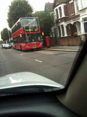 17th September 2010 - Rainbow and new generation Bus David Shepherd snapped this pair of photos with his phone. The first is of a rather nice rainbow over Highams Park during the heavy rain on the 7th September. The second is of a new style double decker bus which has been recently introduced on route 212 (seen here in Winchester Road on its way to Chingford Station). Apparently its called an "SD series" bus. So now you can impress your friends with your encyclopedic knowledge!