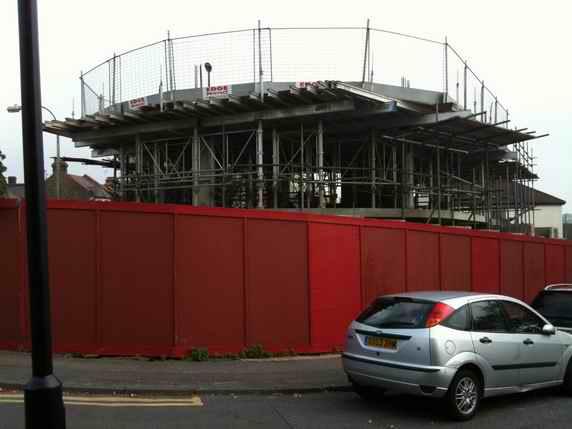 14th October 2010 - Development rises at last The development on the corner of Handsworth Avenue and Church Avenue is starting to make itself visible. This was the site of the Methodist Church and Hall. There was initially a long delay before work started and then a lot of the initial work was below ground. When planning permission was sought by the developer, the Forum commented to the planning committee that it felt the proposal was too high and would dominate the location. The developer felt that the slope of the road would compensate. We shall soon see.