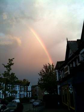 Prompted by the rainbow picture further down this page, "Mr Teatime" sent in a photo of a rainbow over Highams Park taken in the summer. And just to prove that it's not always raining here, he accompanied it with a photo of a stunning blue sky taken at the same location at the end of October.